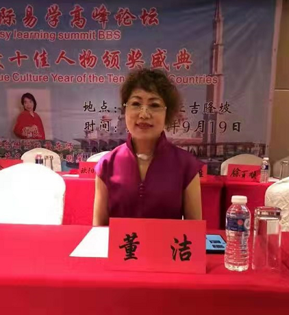 董杰:女,黑龙江哈尔滨人,易学博士,俄罗斯符拉迪沃斯托克远东国际易学研究院特聘副教授,东盟马来西亚国际易学高峰论坛常务副主席。