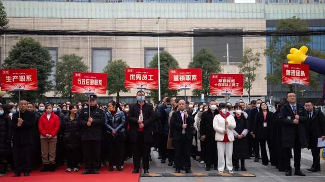 盛会开始前,集团各职能中心,优秀员工队伍,15年以上老员工队伍,管理人员队伍,依次以中队形式整队入场。2022年他们迎难而上,向阳而生;他们是坚实的臂膀,为大家提供保障;他们挥洒着勤劳汗水,成就了品质辉煌;他们是企业命脉和血液,为各部门输送能量。2023年金宫迎来了荣耀的30周年,未来我们还将继续戮力同心,拼搏奋进,共享佳绩!