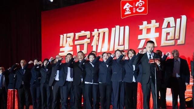 共工日报社四川1月14日(范琦 龚国林)1月14日,四川金宫川派味业有限公司“坚守初心,共创味来”年终盛典在金宫川派味业温江总部产业园盛大举行。来自全国各地区的约400位金宫家人齐聚一堂、互话家常、互致新春问候、共享年终盛宴。