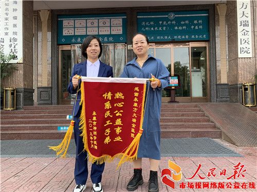 人民日报社市场报网络版浙江永康讯(通讯员:希希 施俊杰)“感谢瑞金医院对我们民工子弟的关爱,今天我们特意送来了一面锦旗,感恩你们的公益之心。”29日一早,永康神洲学校校长王玲俐将一面印有“热心公益事业·情系民工子弟”的锦旗送到永康方大瑞金医院。