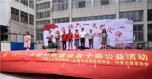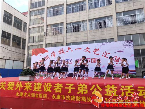 神州学校创办于2012年,是一所民工子弟学校,目前在校生600多人,共有教职员工40多人。得知该校体育用具等各项设施相对缺乏,今年六一儿童节,永康方大瑞金医院院长王红政特意来到学校,将网球架、足球、呼啦圈等价值3000多元的爱心物品送给学校,为孩子们送去浓浓关爱和温暖。