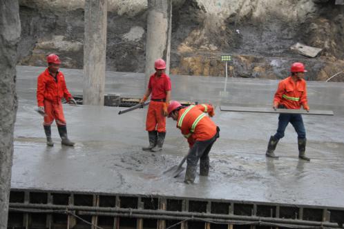混凝土浇筑当天,项目部组织人员分为两班倒机制,班子成员现场指挥全面负责整体布置和安排,近15名项目管理人员,被分配到各个区域,有的负责砼罐车到现场坍落度检测、测温及试块制作、质量检查;有的负责在搅拌站保障料车数量、计量、发料连续性以及监督搅拌站供料稳定性。